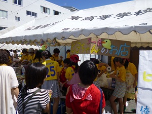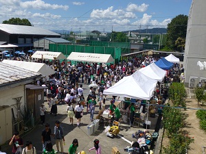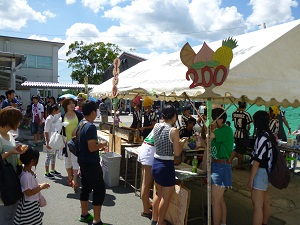 中庭での3学年食品バザーの様子です。