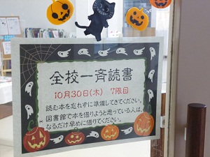 本日7限目の総合学習の時間において、「秋の全校一斉読書」を実施しました。本年度4月に続いて2回目となります。