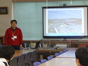講師として、元本校教諭であり、現在は三重県総合博物館学芸員の松本 功先生をお招きし、学芸員とは・・・、ミエゾウ・大杉谷・鈴鹿山脈等の三重の自然のおもしろさ、博物館の展示室の概要等をスライドを使って教えていただきました。