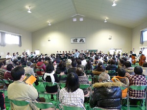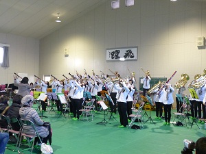 本日、本校吹奏楽部が、日頃より教育活動にご理解いただき、お世話になっている地域の方々へ感謝の気持ちを込めて、地域交流ファミリーコンサートを開催しました。 最初に津東高校吹奏楽部の演奏で「銀河鉄道999」「アナと雪の女王ハイライト」「歌姫〜美空ひばりメドレー」の3曲を、続いて津東高校吹奏楽部OB楽団<East Bird Wind Orchestra>の演奏で「アフリカン・シンフォニー」等4曲を、最後に合同演奏で「Xmas Swingin コレクション」等2曲を聴いていただきました。 この日は、この冬一番の寒さでしたが、地域の方々には心温まるひととき、一足早いクリスマスを楽しんでいただけたのではないでしょうか。