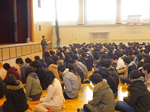 新年あけましておめでとうございます。 本日、3学期の始業式を行いました。 冒頭の校長先生の式辞では、NHK連続テレビ小説「花子とアン」の話を引き合いに出され、「曲がり角の先には・・・」というお話がありました。「どんなに不安で暗い夜でも必ず明けて朝がやってくる。曲がり角の先にはきっと美しい景色が待っている。」「生徒の皆さんも、時には頑張っているのに成果が出ないことがあるかもしれませんが、その先には限りない可能性が待っています。それを信じて今後も頑張ってください。」と訓話されました。 その後は、生活指導主任からバリアフリー工事終了に伴うお礼と使用上の注意、特別教育活動主任から東海大会に出場が決まった男子ハンドボール部とバドミントン部の紹介がありました。 いよいよ2015年がスタートしました。また学年を締める3学期が始まりました。その先に明るい未来が待っていることを信じてこれからも精進していきましょう。