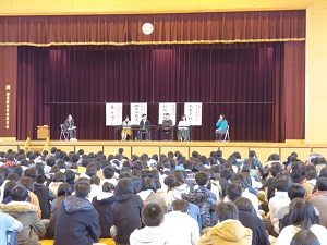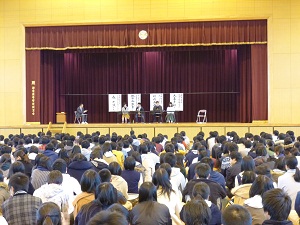本日5限目の総合学習の時間に、大学合格を果たした先輩達から、改めて自身のあり方を考え、次学年の学習生活に活かすため、1,2年生に向けて体験談を話していただきました。