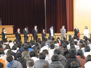 いよいよ新年度が始まりました。新年度、最初の行事は着任式です。新たに14人の先生を迎えました。松岡校長からの紹介後、着任者を代表して、北原教頭から挨拶がありました。 「4月1日、津東に着任し、1週間が経ちました。この間、感じたことを話します。一つ目は校舎がきれいであること、二つ目は進路指導や部活動を熱心に先生方が指導していること、三つ目は廊下ですれ違う生徒が挨拶をしてくれたこと。本当に良い環境の中で、みなさんが励んでいることが分かりました。私たちは津東高校1年生です。みんなと一緒に頑張っていきたいです」と。