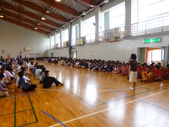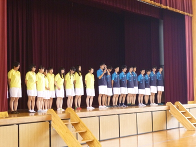 明日、金曜日から県内各地で全国総体への切符をかけた第65回県高等学校総合体育大会が開催されます。 「テニスの錦織圭選手が全仏オープンで活躍するニュースを見ました。体格に劣り、またこれまでなかなか世界で勝つことができなかった、日本人選手が最近、活躍するようになったのはなぜか。一つ目に明確な目標をもつこと、二つ目に何をするかを考える、最後に自信をもつこと。これまで錦織選手は世界的に有名な選手と対戦するとき、相手をリスペクトしすぎていたことに対してコーチが叱責したといいます。・・・最後に明日から大会が始まり、時間はありませんが、力を出し切ってもらいたい」と本日、7限目、大会に出場する選手の壮行会は北原教頭の選手への激励から始まりました。続いて生徒会長から挨拶では「日頃の練習の成果を出してください。悔いなきよう力を出してください。そのためにも体調管理に気をつけてください」と。 ユニフォームを身に纏った各部の選手と、他の生徒が向き合って、挨拶を聞いた後、ハンドボール部から始まり、大会に出場する各部が登壇し、対戦相手や会場、意気込みをキャプテンが語りました。