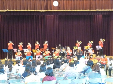 吹奏楽部。体育館ではクラスの発表があり、最後が吹奏楽部。オープニングでは時間の関係で曲目を絞っての演奏でしたが、今日は多くの楽曲を演奏してくれました。