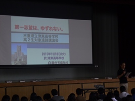 2年生は、10月6日(水)7限目LHRの時間に、駿台予備校から講師をお招きし、「修学旅行が終わったら受験生」というタイトルで講演をしていただきました。中間テストを前に、気分の切り替えを呼びかけました。