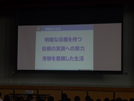 受験は同じ時期に同じ問題に取り組むことになるので、こんな公平なことはない。後はどれだけ努力するかの違いだけというお話でした。具体的な受験勉強のポイントもいくつか紹介され、最後には「今日から頑張ろうと思ったら、その決意を書いて忘れないようにして欲しい」ということで、締めくくられました。