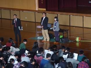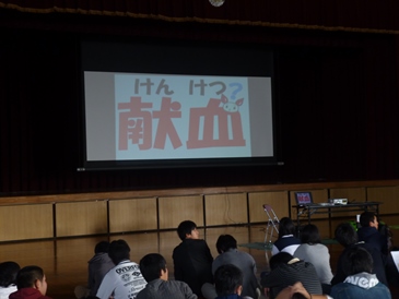 献血=「命」を守るボランティアから講演が始まり、三つのクイズが出されました。