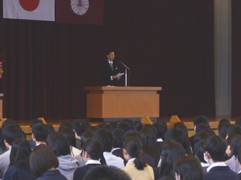 松岡校長から新入生に「意識してほしい、二つのこと」が式辞として贈られました。