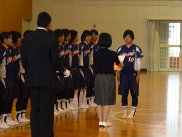 「力を出し尽くしてください」「3年生は最後の大会です。悔いのないように戦ってください」と冒頭、教頭と生徒会長から激励の言葉がありました。