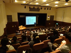 6月4日(土)、人権センターにて、3年生対象の進路保護者説明会を開催しました。約200名の保護者の参加がありました。学年主任、進路主任より学校の様子や昨年度の受験結果、本年度の入試日程等の説明がありました。その後、講師の先生をお呼びしての講演会となりました。