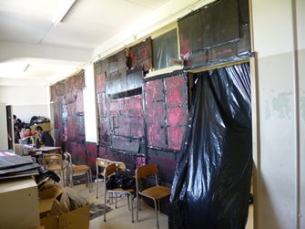 おばけ屋敷をやるクラスでは光を閉ざすのに段ボールを窓や扉に貼ったり、縁日に取り組むクラスではこれまで作り上げた展示物を実際、企画・展示する教室に運び込んだりしました。どのクラスも今日は明日の一般公開に向けて、最後の準備に汗を流しました。