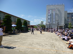 体育館の前には大勢の人だかり。ダンス部の演舞。11時と13時の2回あります。鈴鹿フェスティバルで踊ったダンスを中心に構成されています。