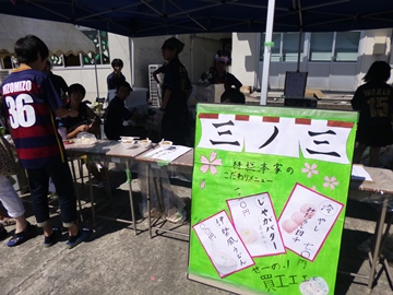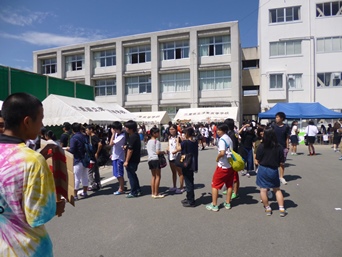 3年生8クラスは「食品バザー」。焼きそば、お好み焼き、みたらし、フライドポテト、ジャガバターなど、これまた学園祭の定番メニュー。