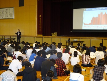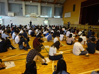 9月に修学旅行も終わり、「いよいよ受験生」ということで、学習時間の変化や、受験勉強とはどのようなものかといったことについて、説明していただきました。