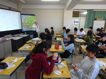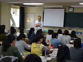 10月20日(木)、総合的な学習の時間で、大学で学ぶ意味や、大学の研究内容などついて直接、大学の先生から話しをきく「大学出前授業」を行いました。6限目に1年生が、7限目に2年生が受講しました。今回は「人文」「外国語・国際」「社会科学」「教育」「工学」「農学」「看護・医療」「児童」「芸術」の全部で9分野から各自の興味関心に応じて講座を選択し、受講しました。講師先生は地元三重大学や三重県立看護大学をはじめ、岐阜大学や信州大学、愛知県立大学、椙山女学園大学、京都造形芸術大学から先生をお招きしました。