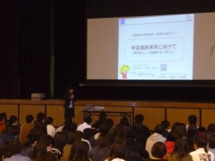 10月25日(火)、7限目に1年生進路講演会が行いました。ベネッセ・コーポレーション名古屋支社の荻原香織先生から、「高校生として意識すること」についてお話を伺いました。
