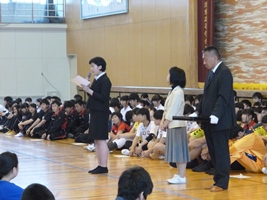 次に春季大会で5位となったソフトボール部の表彰があり、続いて明日から県内各地で開催される県総合体育大会の壮行会に入りました。