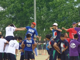 前日の激しい風と雷雨の影響で、まずは飛ばされて足の折れてしまったテントの片付けから始まりました。逆に風が強いことからグラウンドは思ったより乾きが早く、何とか無事開催にこぎ着けました。