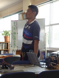 今回は英語科の藤本光臣先生に、「そうだ山に行こう!(自然とのつきあい方)」というタイトルで、講演していただきました。藤本先生は、高校時代受験勉強に追われて部活動もできなかったので、大学に入ったらそれまでの人生を取り戻そうと友だちに誘われて、山岳部に入ったそうです。命の危険性もあることから、辛い練習もあったけれど、先輩や山の仲間から多くのことも教えてもらったということでした。