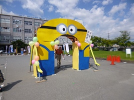学園祭の最初は、来校いただいた方々をお迎えする門です。今年度の門はかわいいミニオンでした。明るい色が歓迎ムードを引き立てていました。