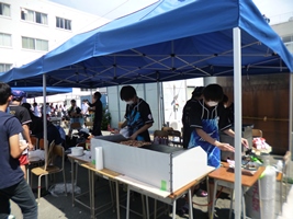 3年生は「食品バザー」。食中毒防止の観点からメニューが制限され、なかなか思うようなものが作れません。工夫を凝らして選んだメニューは、焼きそば、たこ焼き、みたらし、フライドポテト、アメリカンドッグ、唐揚げ、かき氷などでした。