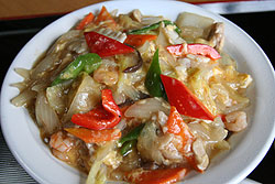 野菜たっぷりの中華丼 ¥600、中華丼セット(ラーメン、唐揚げ、サラダ、コーヒー付き)¥800 中華は油っぽいイメージがありますが、和楽の中華は字の如く、和風の薄味が特長です。お肉の油抜きからきちんとおこない、健康に気を使った野菜が多めのお料理です。 使われる野菜も地元産、お姉さんの畑から取れる野菜も使い、鮮度のよいものにこだわっています。 おすすめランチ ¥800 中華丼セット、マーボドーフセット、ラーメンセット、チャーハンセットが人気です。(お昼のランチは火曜日〜土曜日)